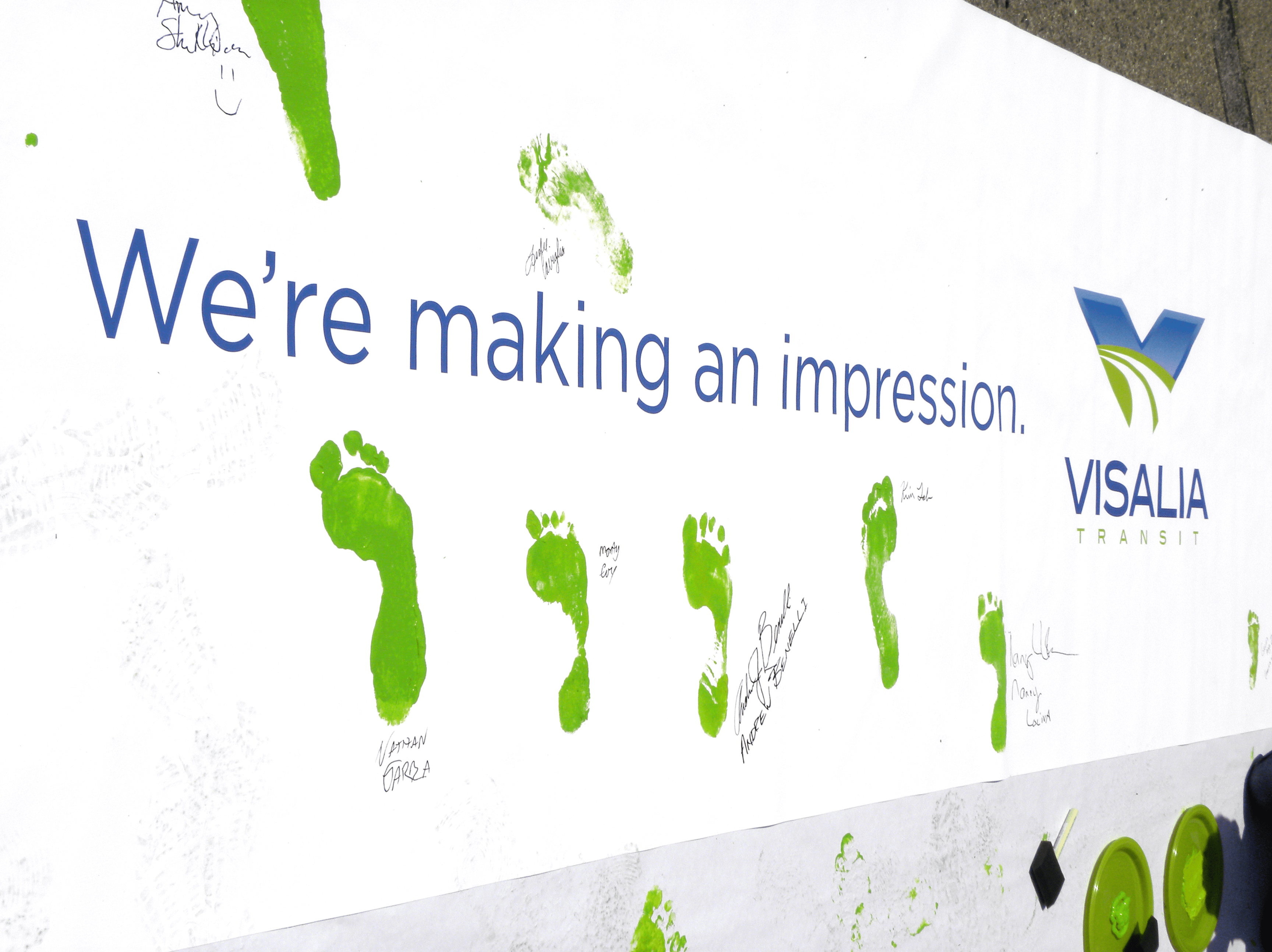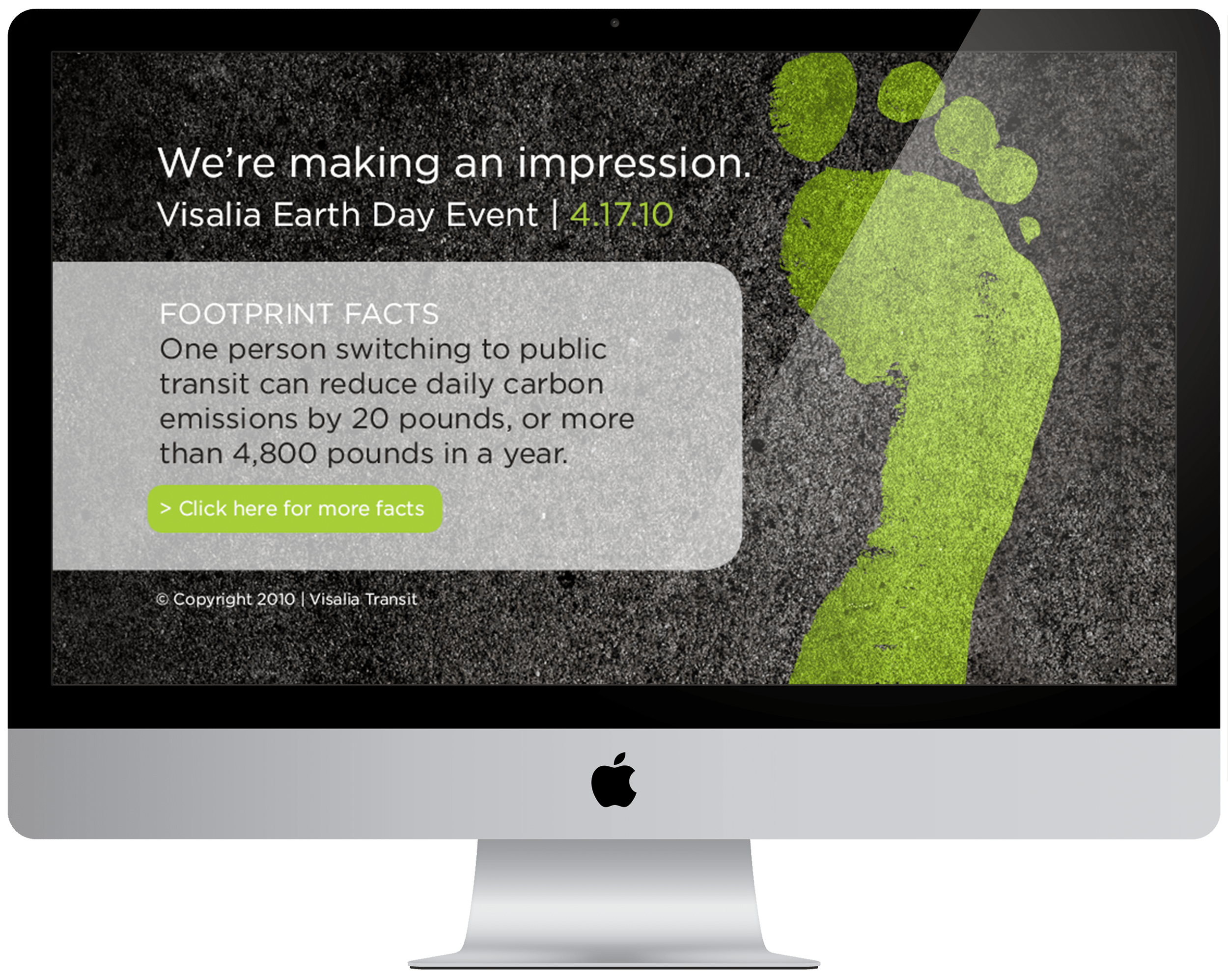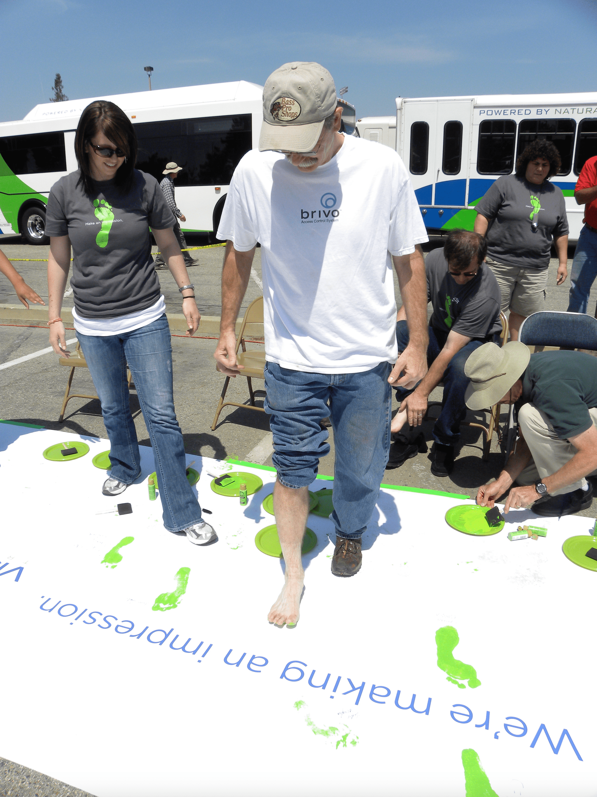 With a new database full of interested visitors, we continued targeted marketing efforts pushing the Earth Day event where we would unveil the new public transportation brand and the new clean fleet. The event was the largest on record, with nearly 400 volunteers present. City leaders and volunteers were asked to paint their feet green and “make an impression” on large banners to symbolize their commitment to reducing their carbon footprint.