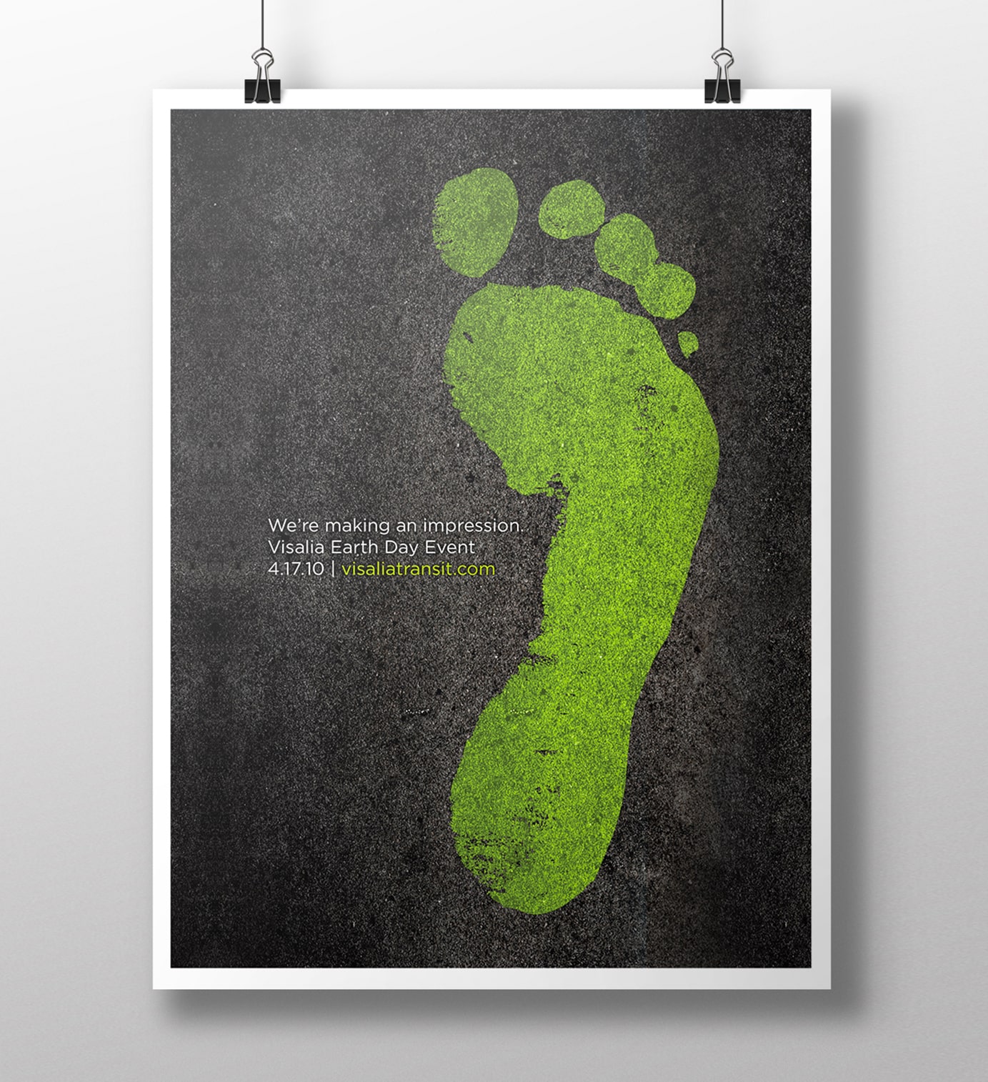 We began promoting the local annual Earth Day event with a simple green footprint symbol and the tagline, “We’re making an impression,” driving people to a promotional website with more information and to sign up for the Earth Day clean-up event. When residents saw green painted footprints on the sidewalks outside Starbucks, the Fox Theatre, the high schools, walking trails, and the libraries, they flocked to the website in droves to see what it was all about.